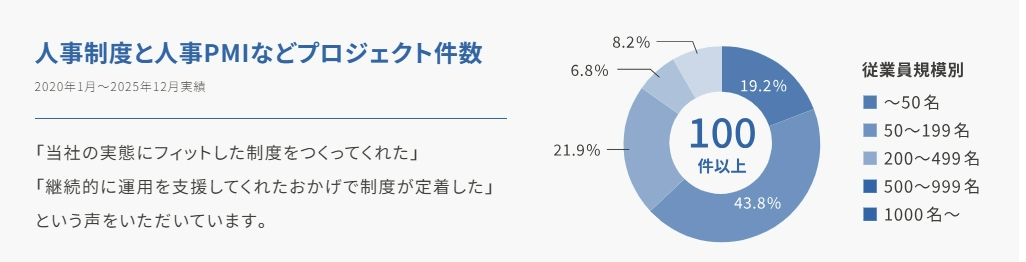 お客さまからは「当社の実態に合った制度をつくってくれた」「継続的に運用を支援してくれたおかげで制度が定着した」との声を多数いただいています。