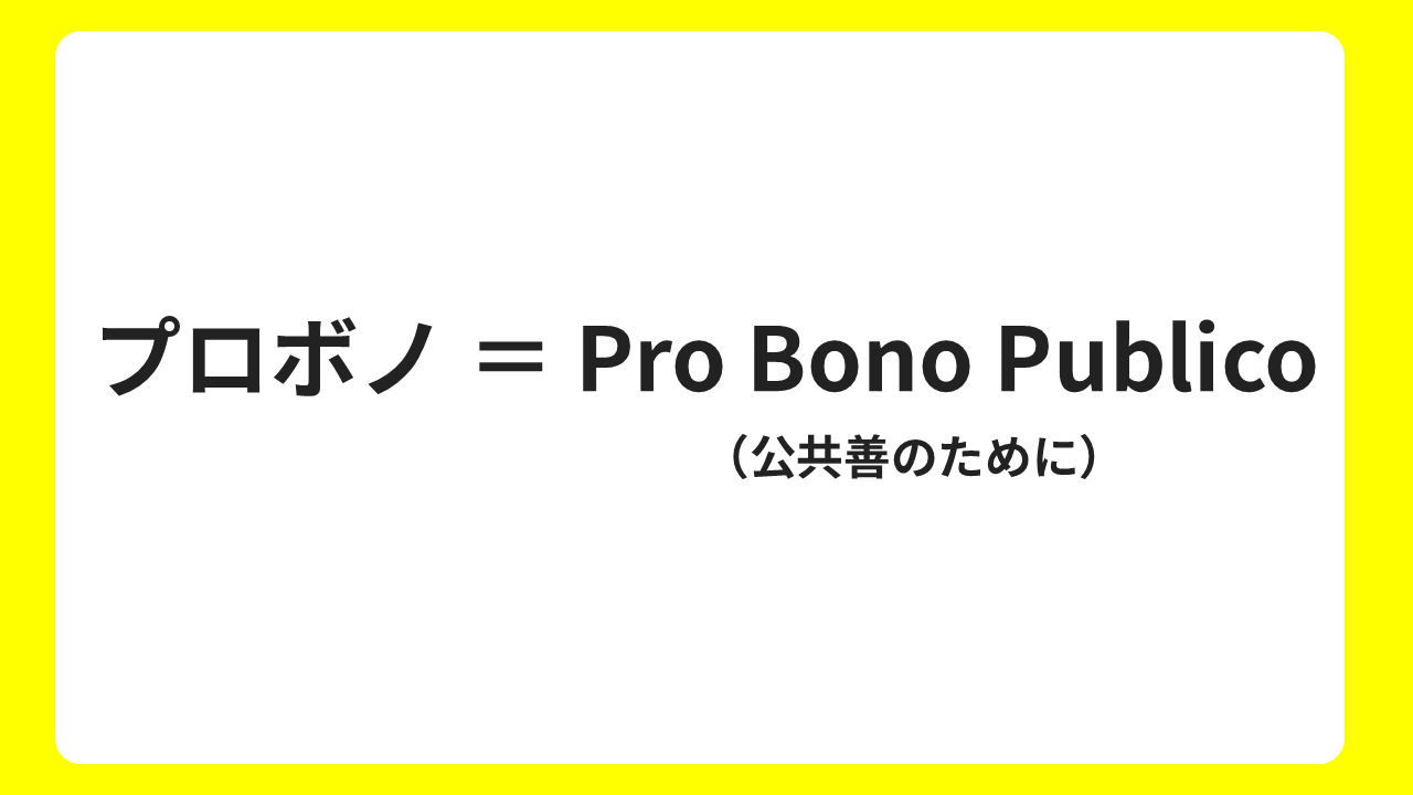 | 事業内容 | プロボノの提供を通じたNPO等支援事業 企業・行政等との連携によるプロボノプログラムの運営事業 プロボノプログラムの運営を担う人材育成事業 プロボノの普及・広報・社会的制度化に関する事業 その他目的を達成するために必要な事業 |