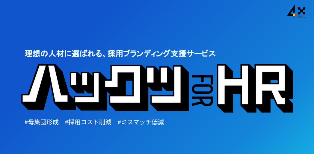 | 事業内容 | ■4Xについて 4Xは、ブランドと社会をつなぐ伴走型コミュニケーションカンパニーとして、顧客の課題に寄り添い、多様化する顧客ニーズに対して、最適なソリューションを提供します。 また、ブランド戦略支援、記事広告、動画制作、広告制作、マーケティング支援(デジタル・オフライン)、イベント支援、ウェブメディア運営、イベント企画・運営などといった多様な専門性を結集し、成果につながる実践的な支援をいたします。 ■統合型採用ブランディング「ハックツforHR」について 採用ブランディング戦略設計から、Instagram・YouTube・TikTokなどのSNS活用、採用サイト制作・運用、採用動画制作などまで幅広いソリューションを通じて、企業イメージの向上と採用成果の最大化を目指し、企業の採用ブランディングの強化をサポートします。 |