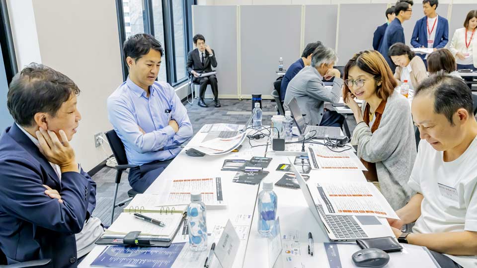 この視点を踏まえて、参加者は自社の状況を見つめ直し、自身について各項目の採点を行った。採点後には、各グループ内で気づきを共有するディスカッションが設けられた。