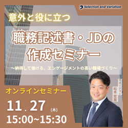 意外と役に立つ職務記述書・JDの作成セミナー ~納得して働ける、エンゲージメントの高い職場づくり~