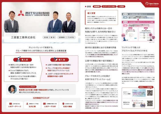 製造業・メーカにおけるタレントパレット導入企業の事例を紹介します。製造業・メーカにおける業界のよくある課題と、タレントパレットの活用シーンを掲載しています。
