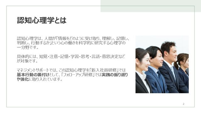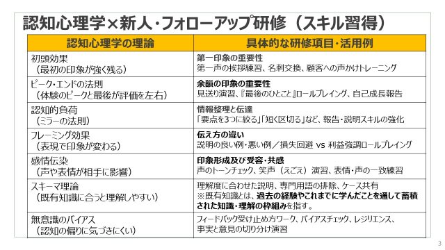本資料では、この認知心理学の知見を、新人研修やOJT、フォローアップ研修にどう活かすかを具体的に解説しています。