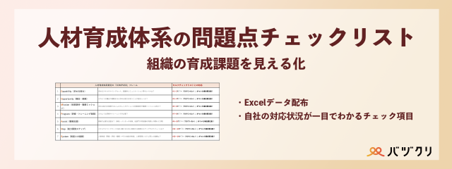 この資料では、自社の育成体系が機能しているかをセルフチェック形式で確認できます。