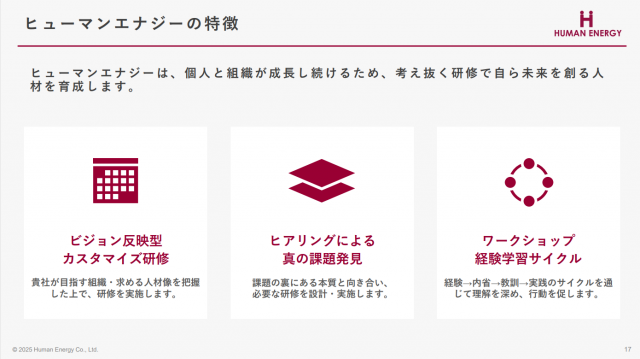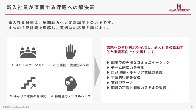 ヒューマンエナジーがご提案する新人研修の全体像のご案内です。