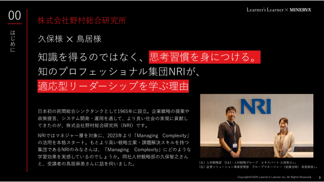 知のプロフェッショナル集団NRIが、適応型リーダーシップを学ぶ理由