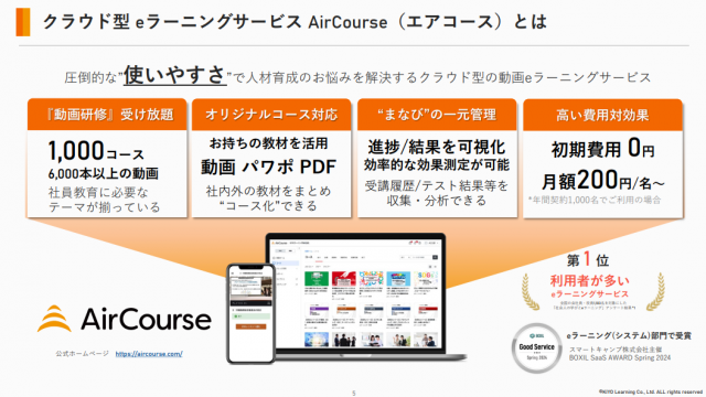ERP・人事システム 法人向けeラーニングサービス「AirCourse」
