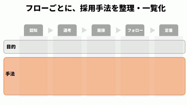 ・採用フローごとに手法を整理、俯瞰的な視点でツールを検討できる。