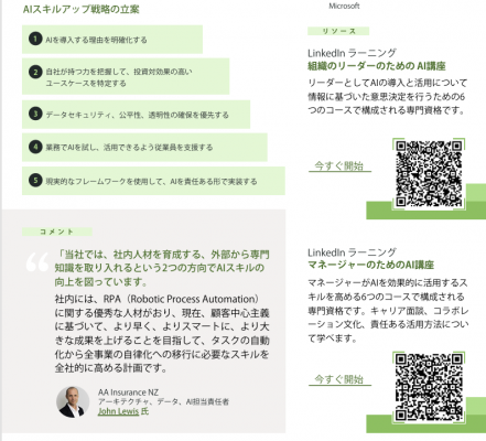 また、AIリテラシーの向上や役割に応じた技術スキルへの投資、責任あるAI活用のポイントも解説されており、AI活用による組織変革や人材育成のヒントが得られます。