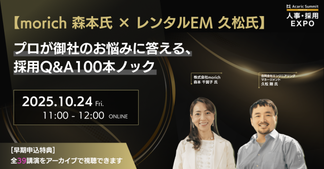 Biz領域からテック領域まで、採用を知り尽くしたトッププロのお二人に回答いただきます。