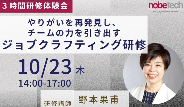 \3時間研修体験会/やりがいを再発見し、チームの力を引き出すジョブクラフティング研修~エンゲージメントと生産性を高める行動計画づくり~【ノビテク】