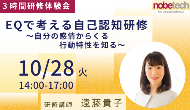 \3時間研修体験会/EQで考える自己認知研修~自分の感情からくる行動特性を知る~【ノビテク】