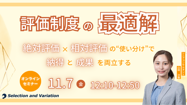 本セミナーでは、絶対評価・相対評価それぞれの特徴を整理し、いろいろな評価制度との“相性”や、報酬反映の考え方までを、事例を交えて分かりやすく解説します。
