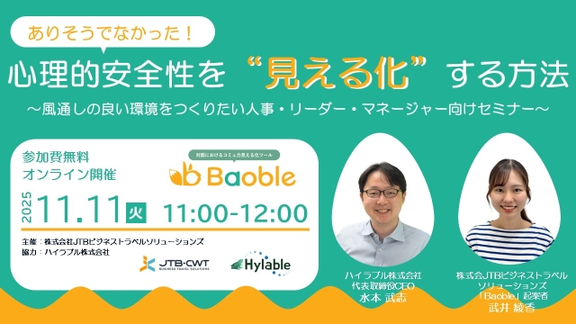 主催 | 株式会社JTBビジネストラベルソリューションズ ハイラブル株式会社 |
