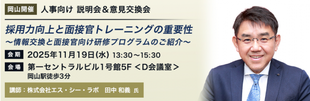 【無料/岡山開催】採用力向上と面接官トレーニングの重要性 ~人事向け 説明会&意見交換会~