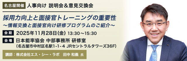 【無料/名古屋開催】採用力向上と面接官トレーニングの重要性 ~人事向け 説明会&意見交換会~