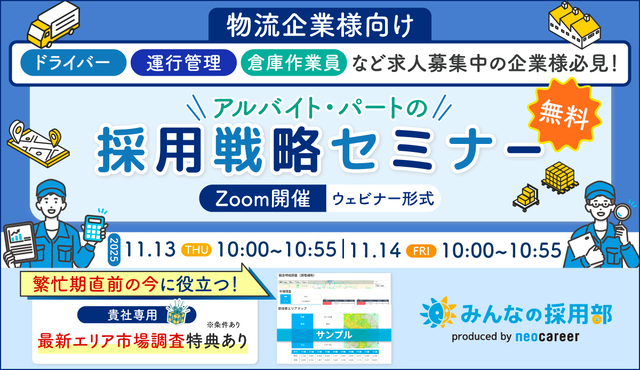 【ドライバー・物流企業向け】アルバイト・パートの採用戦略セミナー