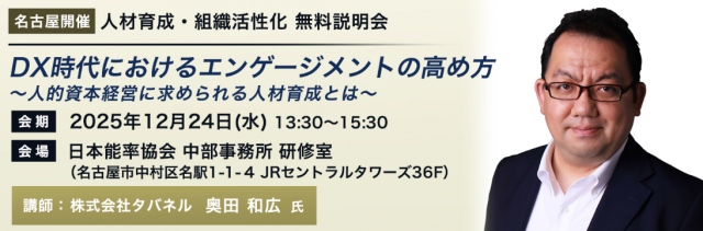 【無料/名古屋開催】人材育成・組織活性化 無料説明会 DX時代におけるエンゲージメントの高め方 ~人的資本経営に求められる人材育成とは~