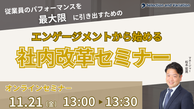 従業員のパフォーマンスを最大限に引き出すための 「エンゲージメントから始める社内改革セミナー」