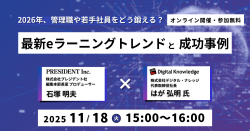 2026年の管理職・若手育成はどうする?AI時代を勝ち抜く「社内の知」(デジタル・ナレッジ)と「社外の知」(プレジデント社)の最適解を、両社のプロがセミナーで解説。最新調査も限定公開。