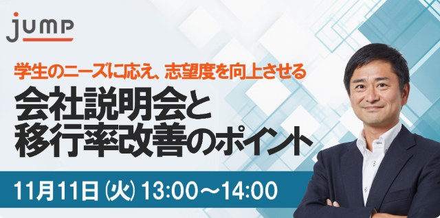 【11/11(火)オンラインセミナー】学生のニーズに応え、志望度を向上させる!会社説明会と移行率改善のポイント