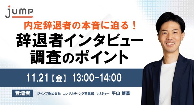 今回のセミナーでは、辞退者インタビュー調査の企画・実施を得意とするジャンプが、実施のポイントから、具体的な実施方法、調査で得られることについてお伝えします。