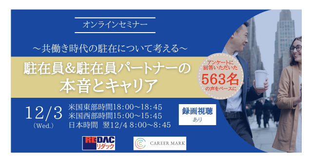 ~共働き時代の駐在について考える~駐在員&駐在員パートナーの本音とキャリア│12/4(木) ウェビナー開催【録画視聴あり】