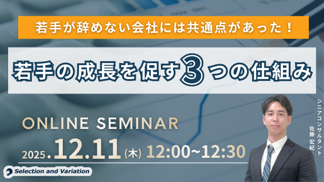 若手社員の早期離職が企業の大きな課題となる中、定着と成長の両立に成功している企業には共通する“仕組み”があります。本セミナーでは、買い手市場から売り手市場への環境変化を踏まえ、若手が辞めずに育つ組織づくりに必要な3つの仕組みについて解説します。制度や育成の整備だけでなく、日々の現場でできる工夫や上司の関わり方にまで踏み込んだ内容で、実践に活かせる具体的なヒントを提供します。