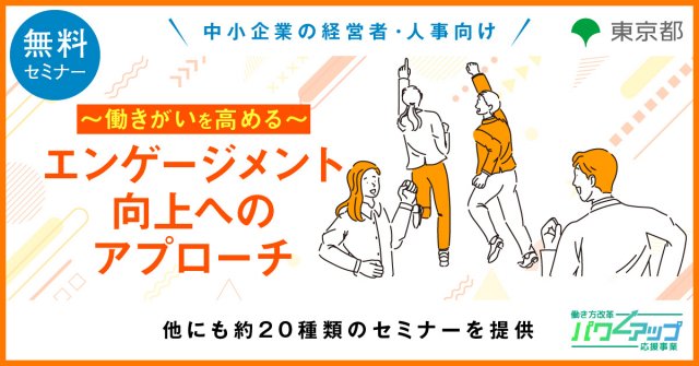 注目されているワークエンゲージメントとは何か、社員定着や生産性の向上にどのように寄与するかを実例を交えて解説します。(東京都主催/働き方改革パワーアップ応援事業)