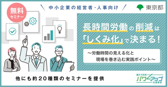 長時間労働が招く法的リスクと労働時間管理のポイントを解説、長時間労働を削減するために社内を巻き込む仕組みづくりを紹介!東京都主催/働き方改革パワーアップ応援事業