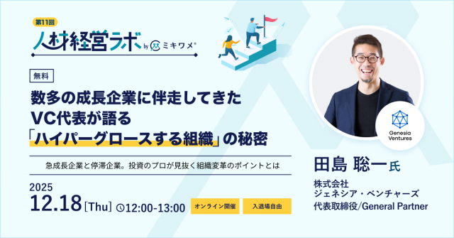 今回はジェネシア・ベンチャーズで投資判断の最前線に立つ田島聡一氏が登壇。投資家として見極めてきた「この組織なら任せられる」という判断基準と組織変革の実践論を惜しみなく公開します。