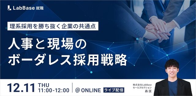 本セミナーでは、理系採用の最新動向を深く掘り下げ、採用成功企業が実践している「人事と現場のボーダレス採用戦略」を徹底解説します。