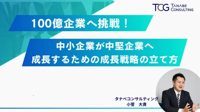 本動画視聴版ウェビナーでは、中小企業が中堅企業へと進化し、100億企業を目指すための具体的な成長戦略・経営計画の立て方を解説します。
