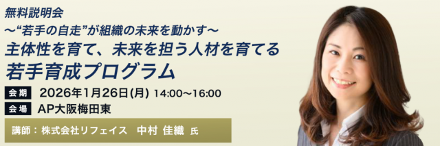【無料/大阪開催】~“若手の自走”が組織の未来を動かす~ 主体性を育て、未来を担う人材を育てる若手育成プログラム