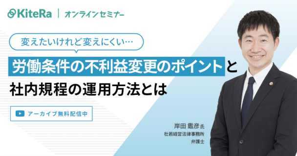 今回のセミナーでは、企業法務に精通した杜若経営法律事務所の岸田先生をお招きし、社内規程を変更していくときに留意すべき不利益変更のポイントや実際にどのように運用していけば時代に合った対応が可能なのかを解説いただきます。