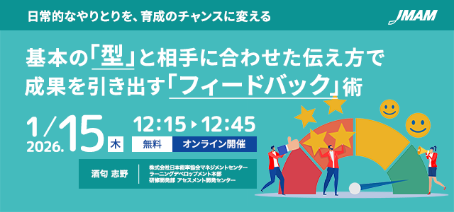 本セミナーは、よくある課題を取り上げながらフィードバックを効果的なものにするコツを解説。管理職が効果的なフィードバックを行うための基本プロセスやタイプを体系的に学び現場で実践できるヒントを提供します。