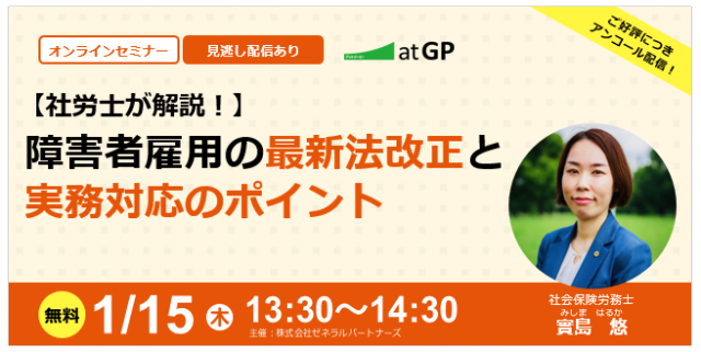 本セミナーでは、障害者雇用の最新法改正と実務対応のポイントをお伝えします。