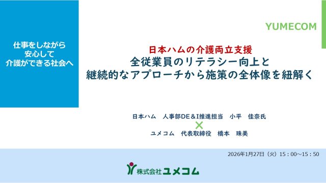 日本ハムの介護両立支援「全従業員のリテラシー向上施策と継続的なアプローチから施策の全体像をひも解く」