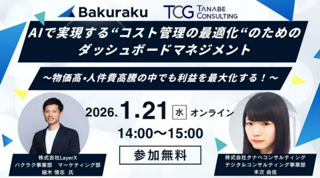 本ウェビナーでは、こうした状況でも利益を守るための“コスト管理の最適化”をどう実現するかをテーマに、タナベコンサルティングがコストマネジメントのあり方を、LayerXがその解決に向けた実践的なソリューションをご紹介します。