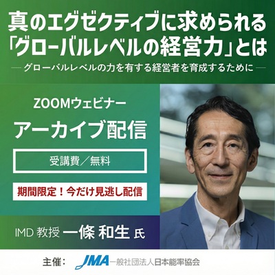 見逃し配信【IMD 一條 和生教授ご登壇】真のエグゼクティブに求められる「グローバルレベルの経営力」とは