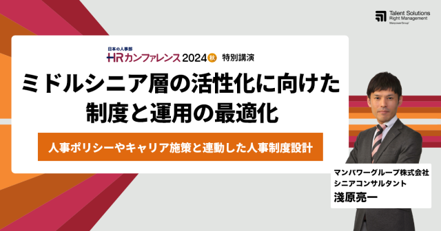 『日本の人事部主催|HRカンファレンス2024秋』において、「ミドルシニア社員向け制度の導入・改定を検討している」企業を対象とした講演を行いました。