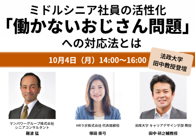 アーカイブ配信◆【法政大学・田中教授登壇】ミドルシニア社員の活性化「働かないおじさん問題」への対応法とは