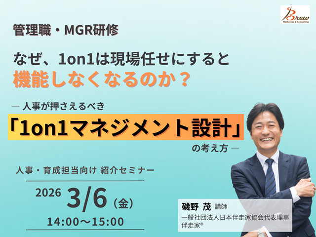 本セミナーでは、1on1が「現場任せ」や「上司の力量頼み」になってしまう理由を整理し、人事として、どこまで設計し、どこから現場に委ねるべきかを明らかにします。