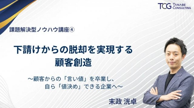 講座名:下請けからの脱却を実現する顧客創造~顧客からの「言い値」を卒業し、自ら「値決め」できる企業へ~