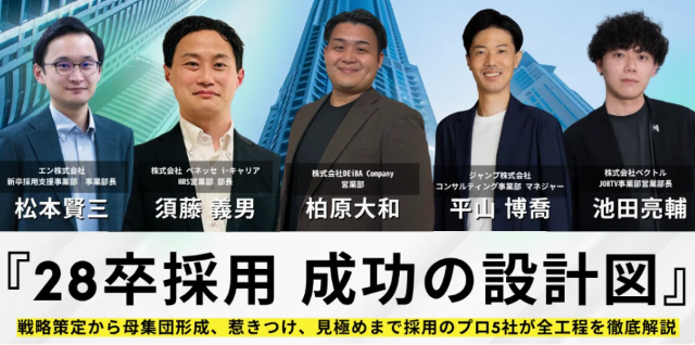 【2/24(火)オンラインセミナー】28卒採用 成功の設計図~戦略策定から母集団形成、惹きつけ、見極めまで採用のプロ5社が全工程を徹底解説~