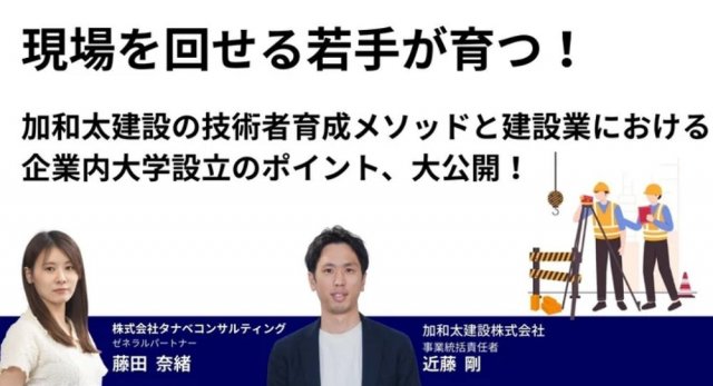 加和太建設はこうした課題にいち早く着目し、タナベコンサルティングと連携しながら独自の社内アカデミーを構築し、若手技術者が「現場を回せる存在」に育つまでの仕組みづくりを進めてきました。