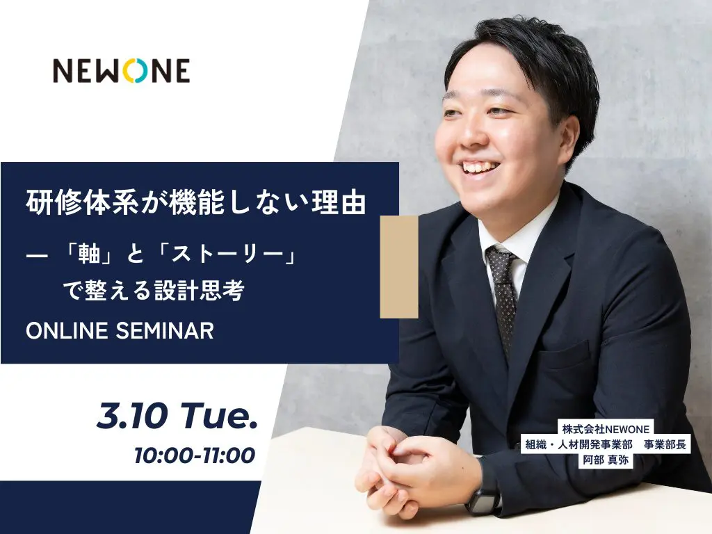 本セミナーでは、研修体系が機能しない構造的な理由を整理した上で、「軸」と「ストーリー」という設計思考の観点から、学びがつながり、育成効果を高める研修体系の再設計方法を紐解きます。