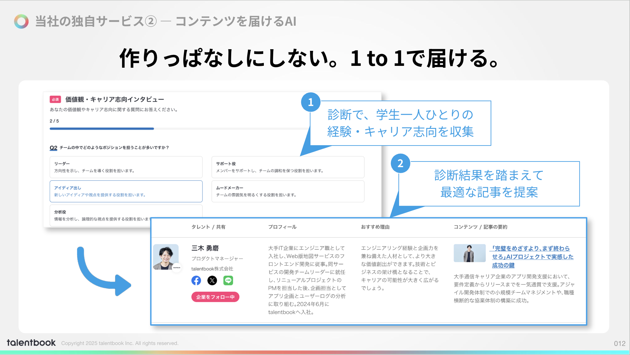 with AIで、学生一人ひとりの選考体験を向上 talentbook