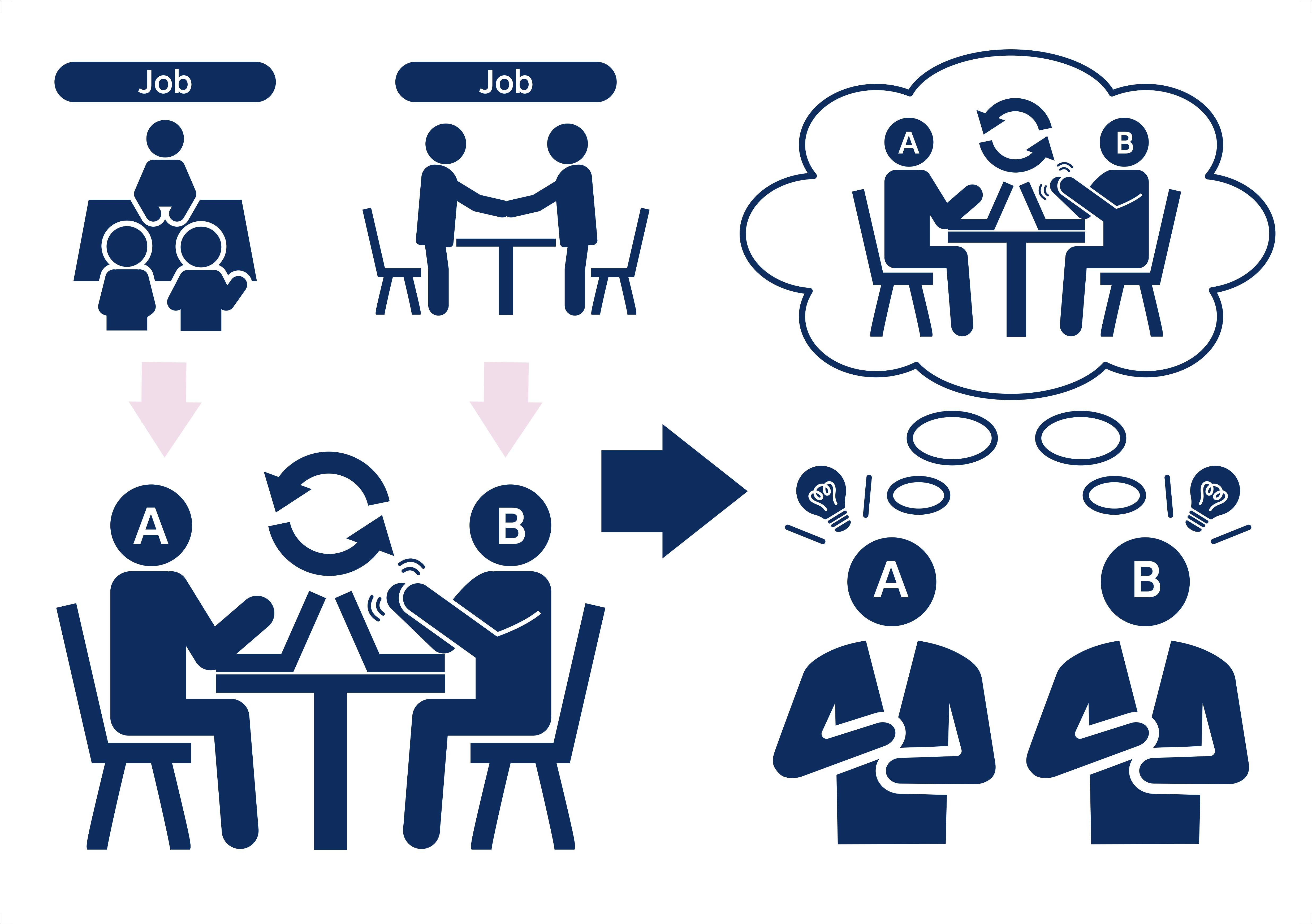 ピアとなったパートナーと週1回の振り返りを実施します。パートナー支援を通じ、自己理解を深めます。また、お互いの体験を言語化しあうことにより、経験学習モデルの中の『概念化』を深めます。