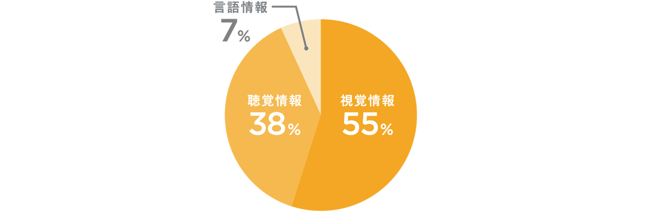 心理学の「メラビアンの法則」では、人と人がコミュニケーションを行う際、相手に影響を与えるのは、言葉による情報は7%に過ぎず、聴覚情報と視覚情報が93%と言われています。良質なコミュニケーションを目指すには、言葉を大事にしながらも、非言語を意識していくことが重要です。